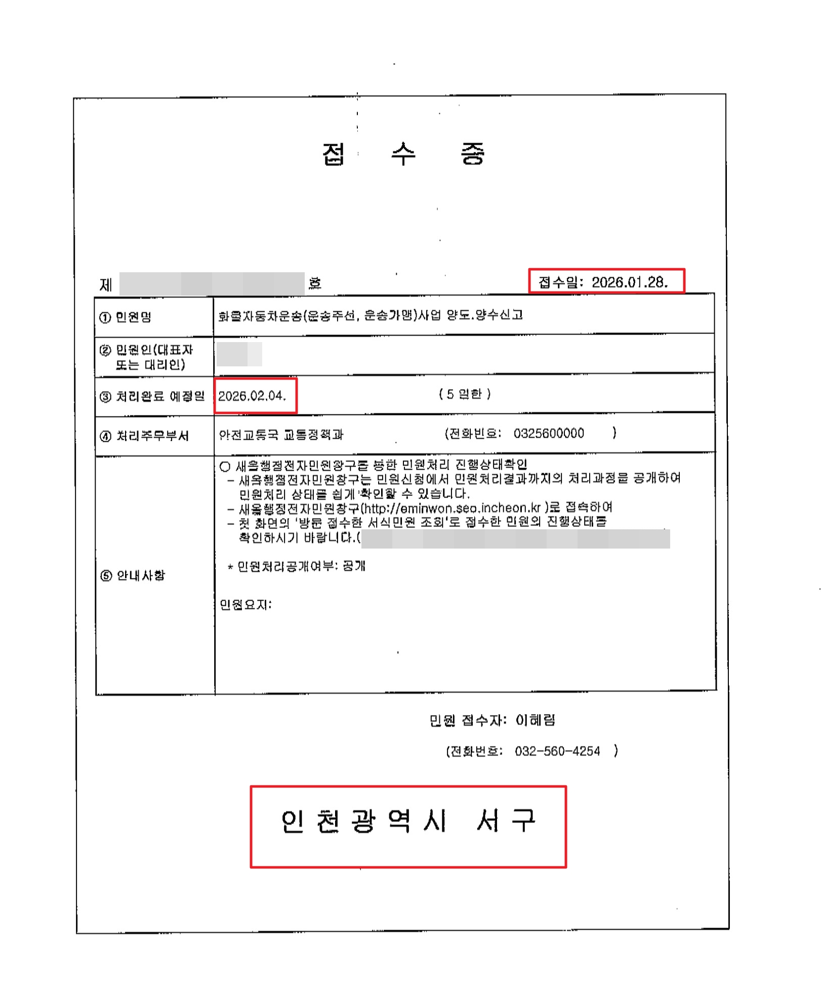 관할 관청에 서류 접수를 정상적으로 완료했고,